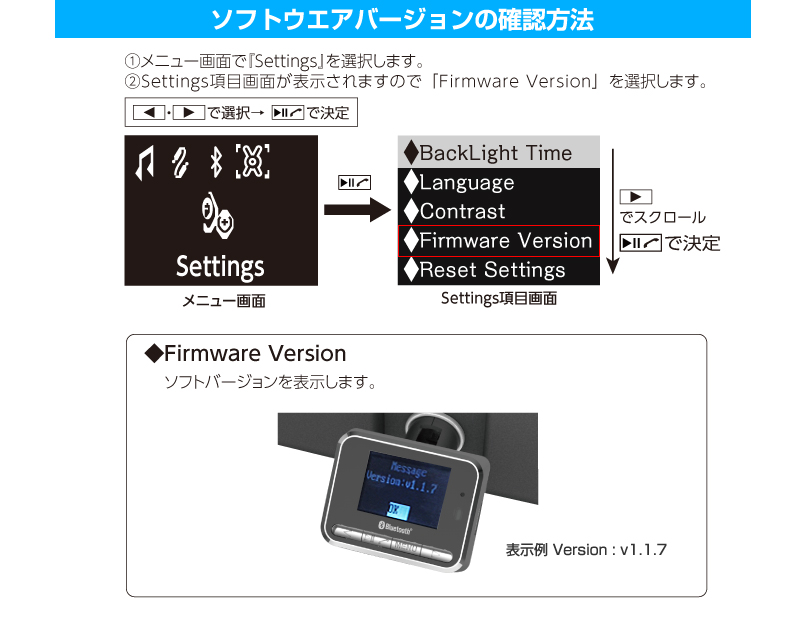 【バージョンアップソフトのダウンロードはこちら】 お使いのFMトランスミッターの型番が分からない方は、下記『ソフトウェアバージョンの確認方法』をご参照ください。