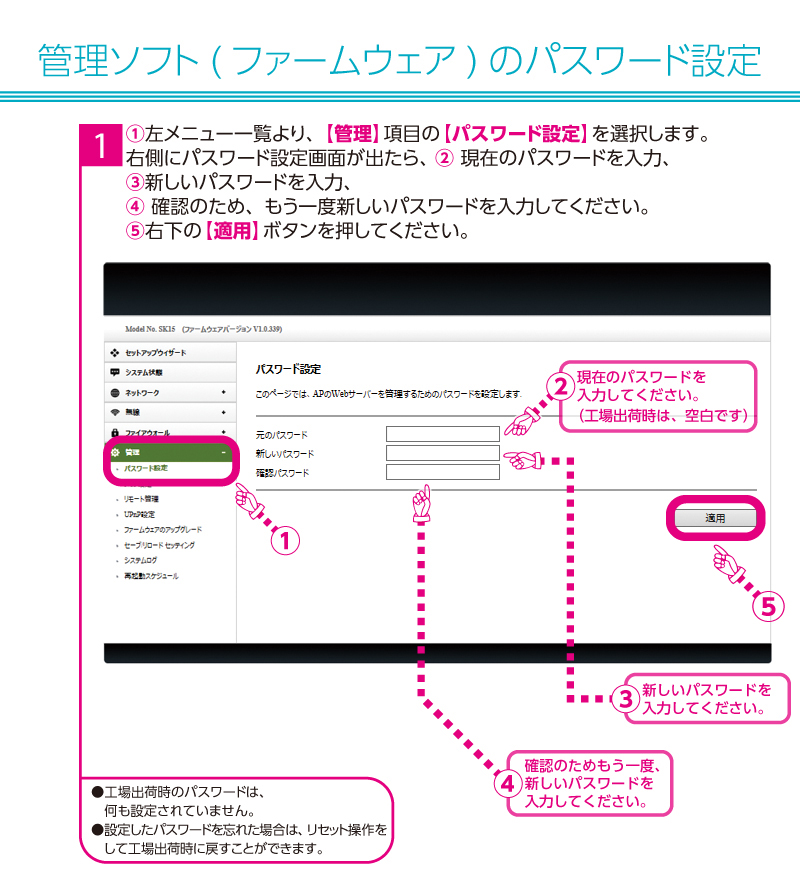 - 管理ソフト(ファームウェア)のパスワード設定について