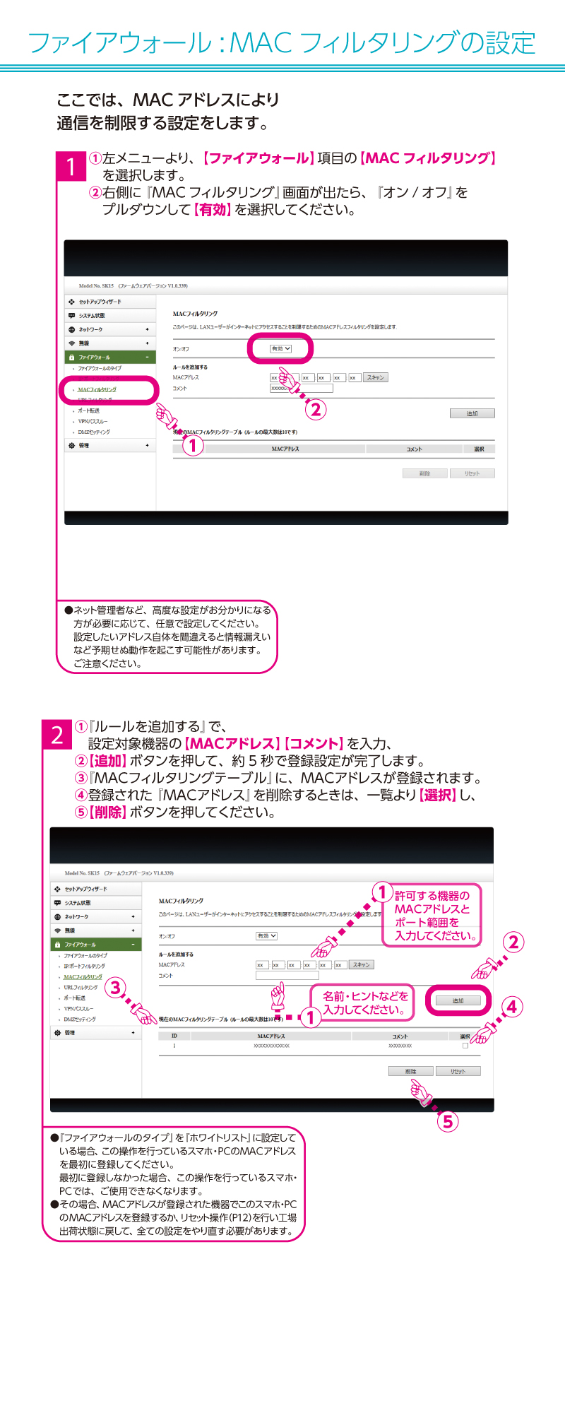 → ファイアウォール:IP/ポートフィルタリングの設定