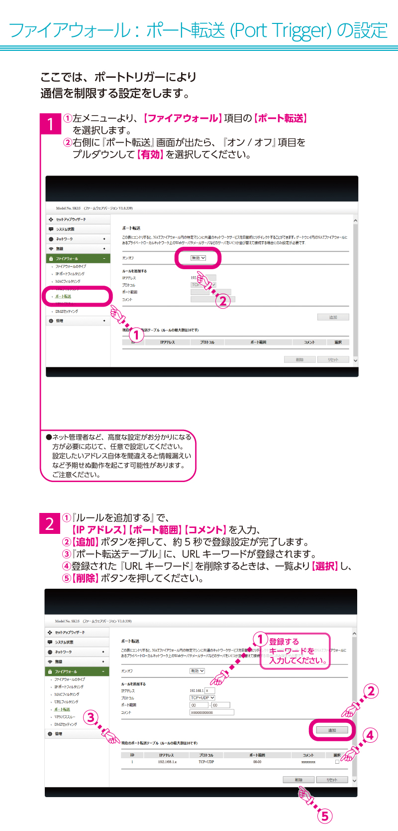 → ファイアウォール:IP/ポートフィルタリングの設定